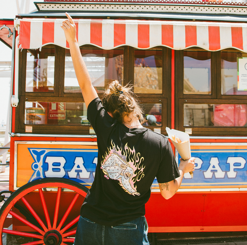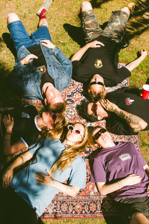 We grew up in the scene, music festivals, waves, nature, skateparks, and underground shows. We support bands, artists, athletes, and show up where it counts. We’re not just dressing the scene, we’re part of it and you’ll always find us where the noise is.